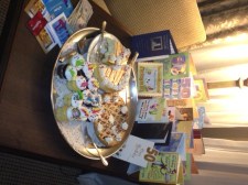 My nephew Christopher set up music and a playlist with his iPad. He was the “DJ” for the event. I was standing next to him and he said something like  “I dont know anyone here. I’ll bet others don’t. Are you going to get people talking?” And so we began “calling” — getting the little kids to come up and answer questions like who can do spock fingers and other recessive gene traits. More than 50% of the people in the room have light colored eyes. 30% can do a clover leaf tongue. And the blonde spot at the back of the head is more prevalent than most let on.